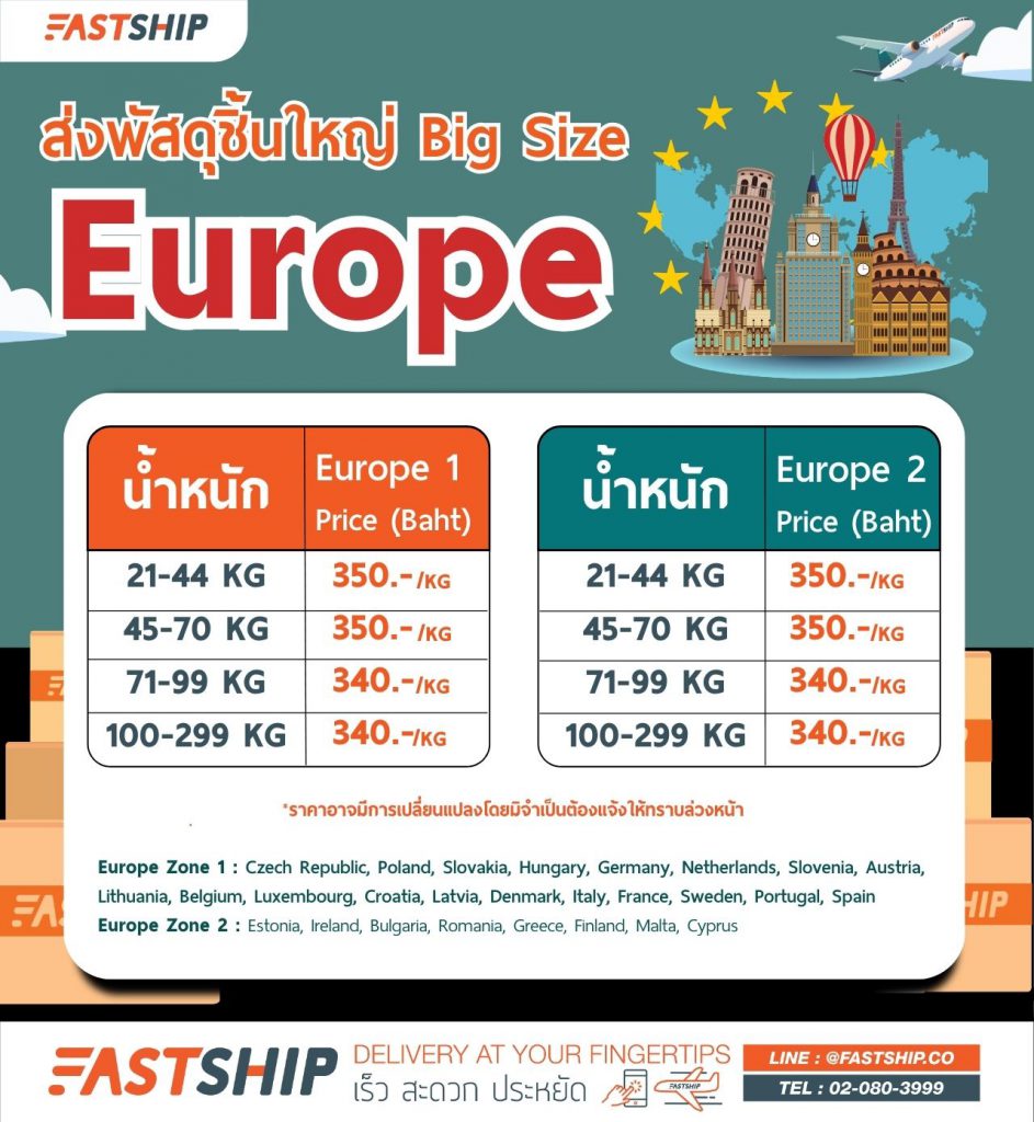 ส่งของชิ้นใหญ่ ไซส์เบิ้มในราคาประหยัด ไปโซนยุโรปได้กว่า 51 ประเทศ ทุกประเทศราคาเดียว ไม่มีบวกค่าพื้นที่ห่างไกล (Remote area)