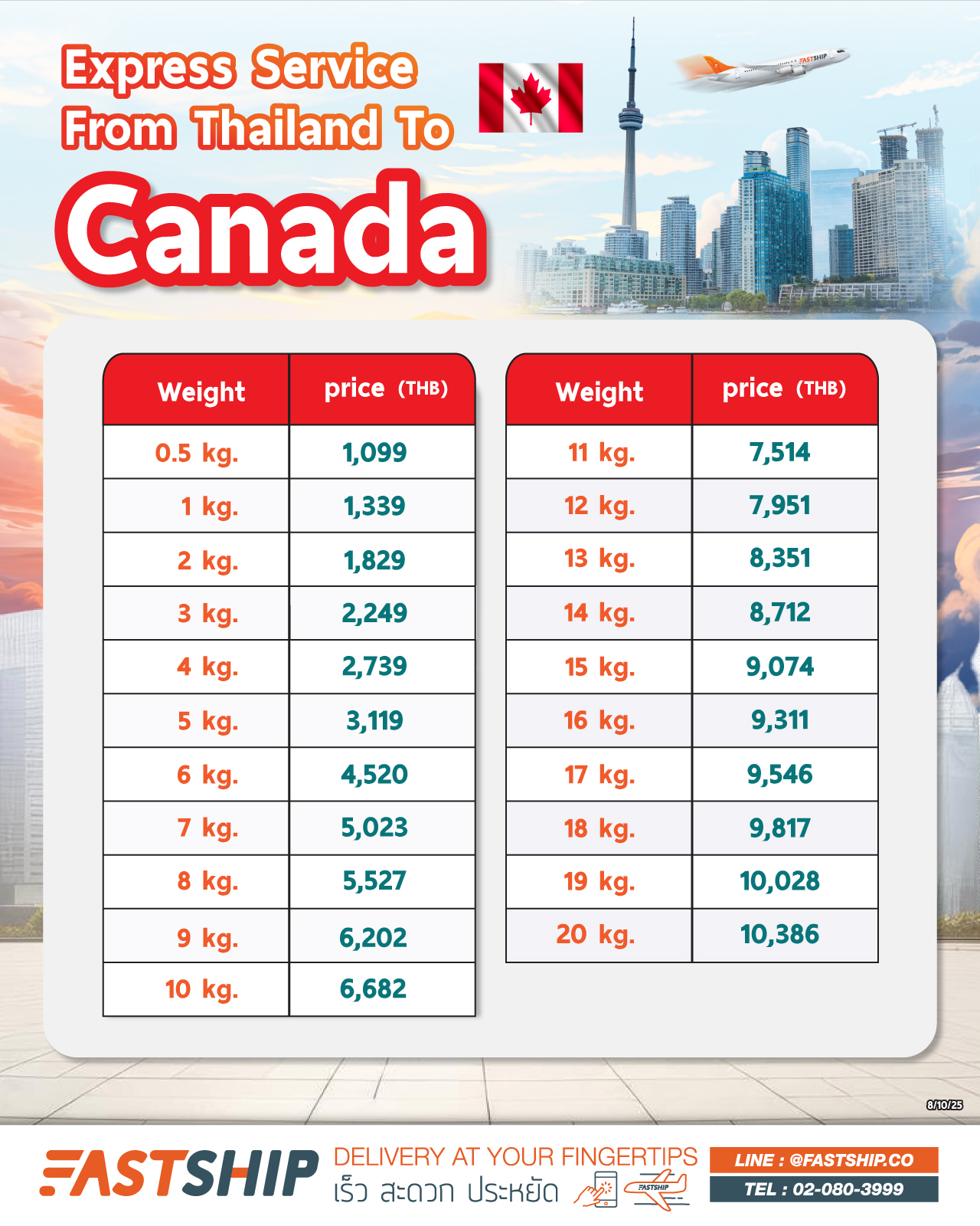 FastShip offers express international delivery services in only 3-5 business days. We provide special shipping rates for online sellers who need to export to Canada or individuals looking to send items to family, relatives, or friends studying in the Canada.